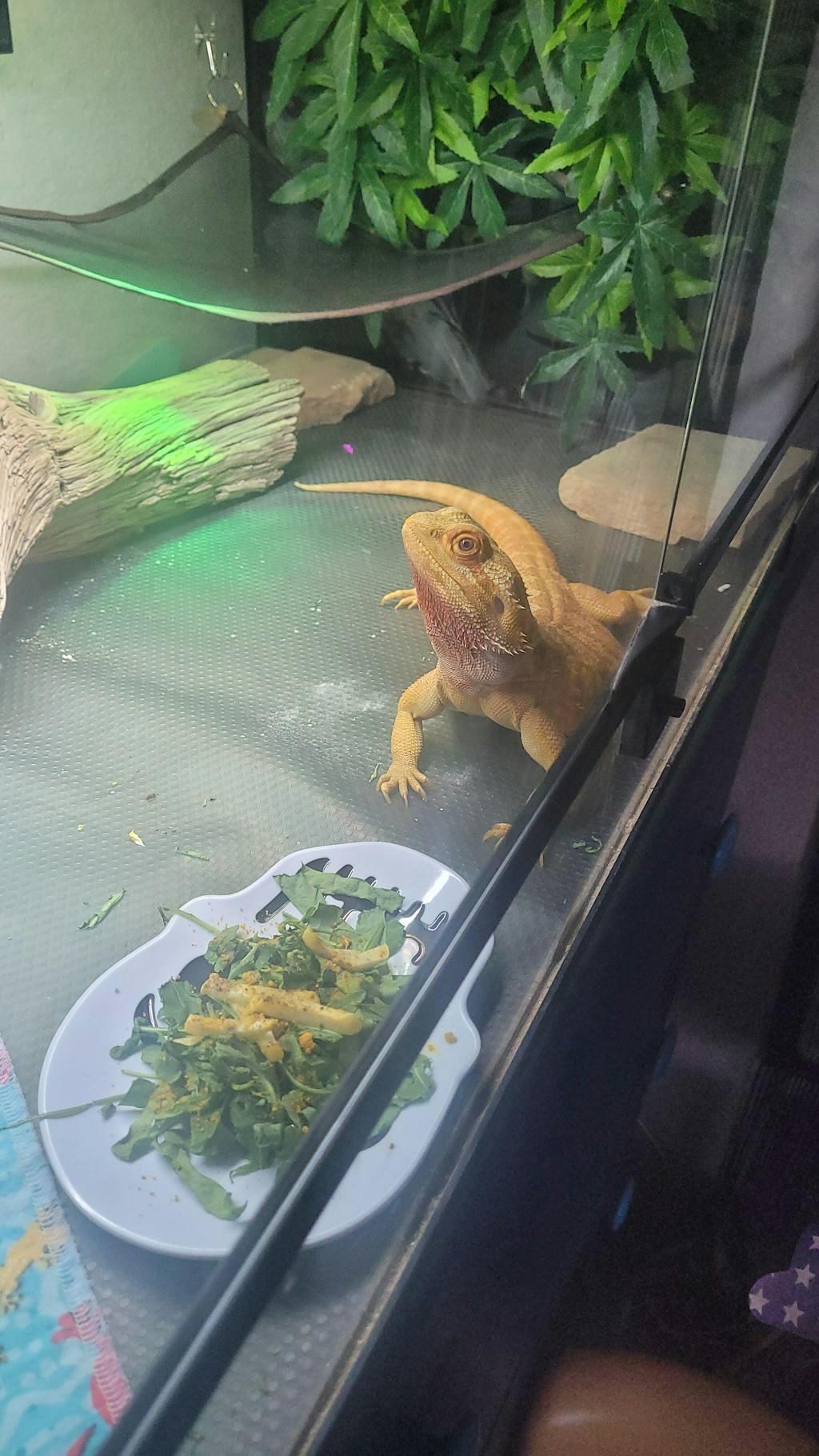 Adult bearded dragons are commonly fed a diet consisting primarily of leafy greens with supplemental protein. When reptiles are selective with vegetables, lightly dusting greens with bee pollen powder may help increase interest in feeding.